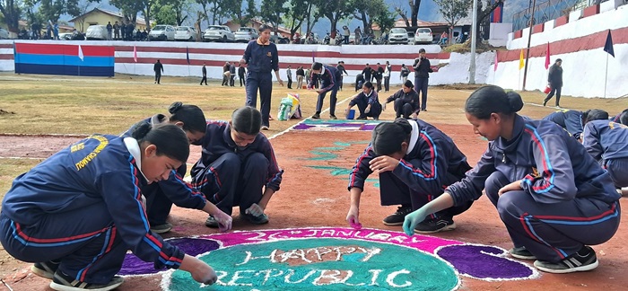 मैदान में वि​भिन्न रंगों से तिरंगा सहित मनमोहक चित्रकारी की गई, भव्य रुप से मनाया जाएगा गणतंत्र दिवस–