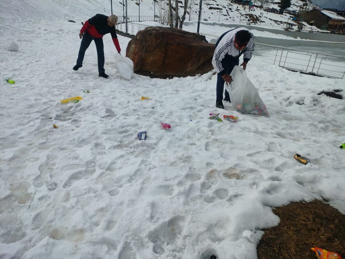 बर्फबारी के बाद बड़ी संख्या में पहुंच रहे यहां पर्यटक, छोड़ रहे प्ला​स्टिक कूड़ा, नगर पालिका के पर्यावरण मित्र सफाई में जुटे–